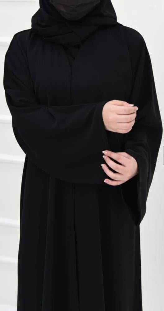 - الموديل: عباية سادة كلوش كم مربع بتصميم عصري وراقي.