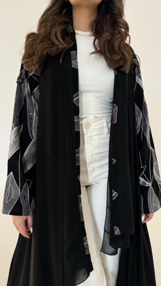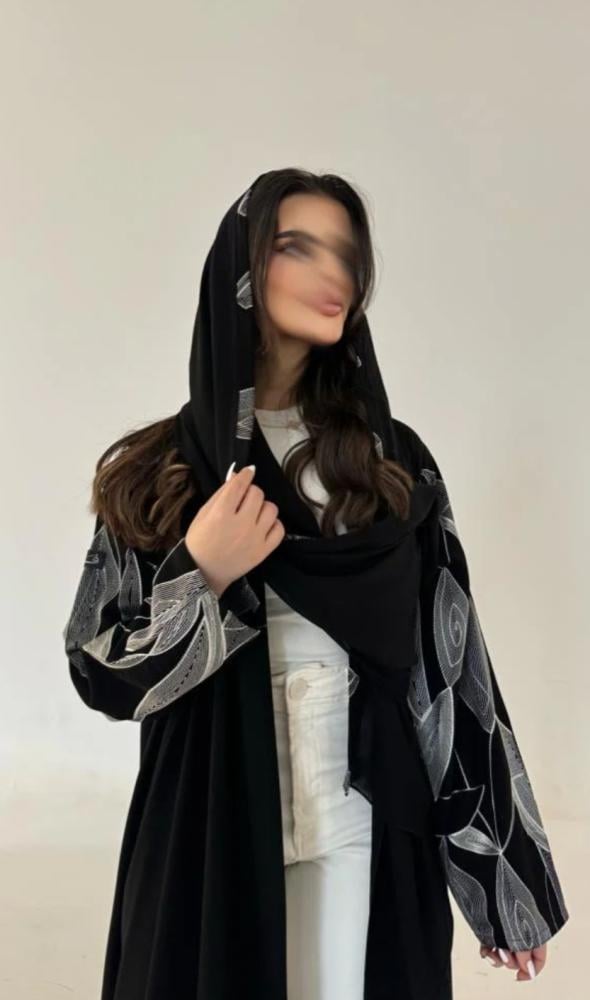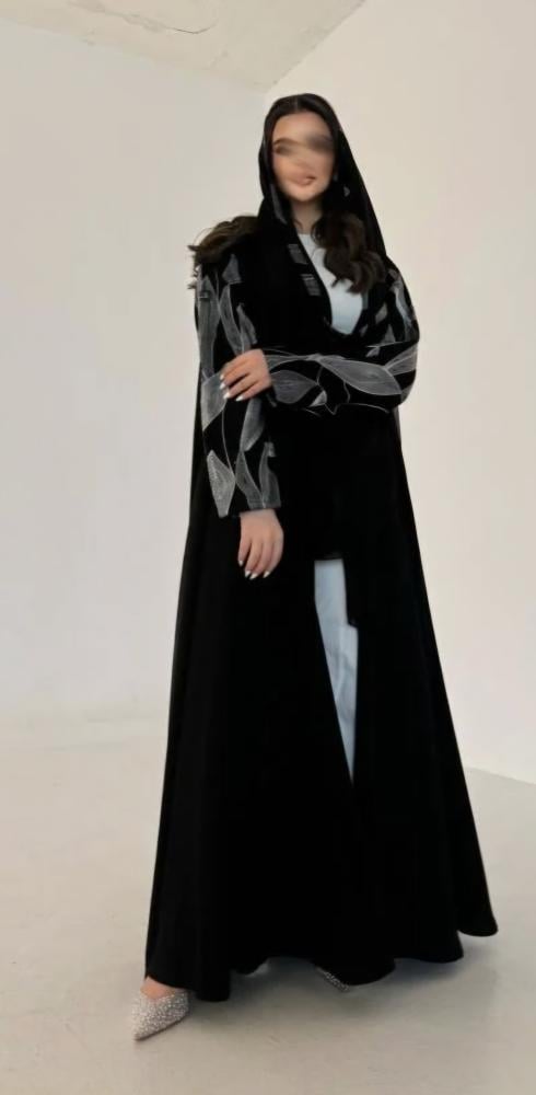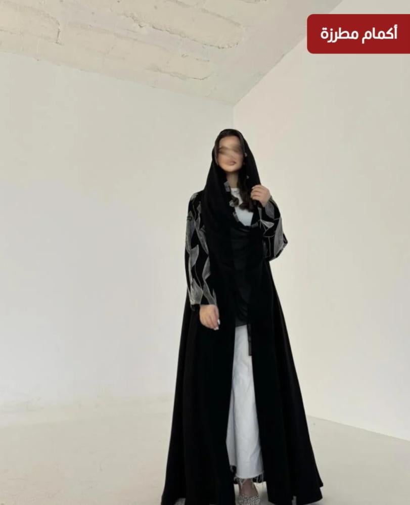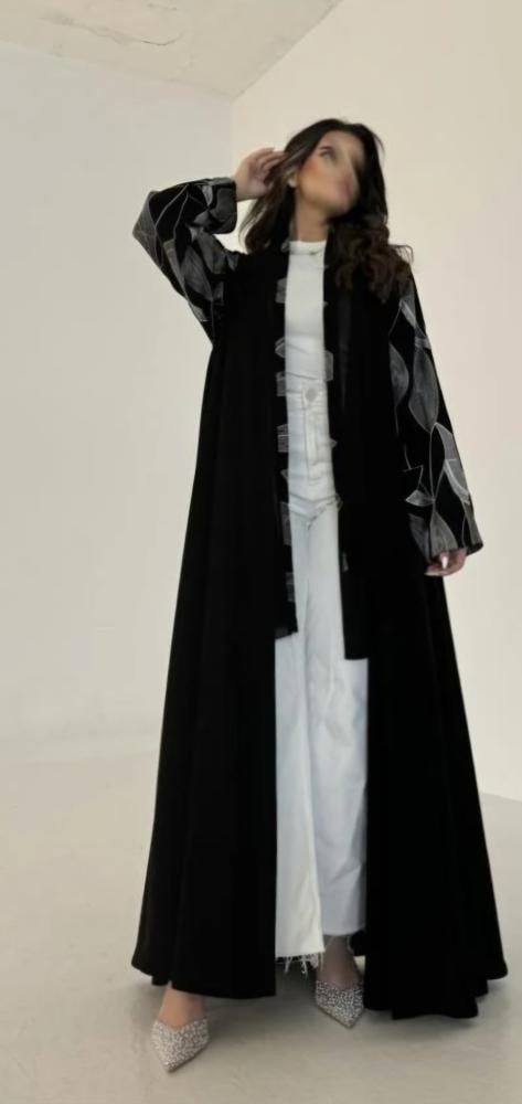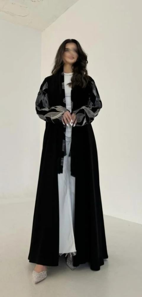 - الموديل: عباية مع اكمام مطرزة قصة كلوش