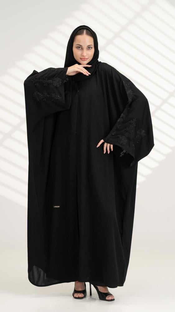 عباية سوداء مطرزة تتميز هذه العباية بتطريزات دقيقة تضيف لمسة من الفخامة والجمال.